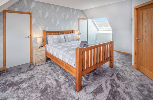 Shower Room: Cubicle Shower, Toilet. Gas central heating, electricity, bed linen, towels and Wi-FI included. Inital logs for wood burner included. Travel cot and highchair. Selection of games. Enclosed garden with decking and garden furniture. Private parking for 2 cars No smoking. . Beinn View House is a large two storey detached house set in its own gardens and is perfect for families or a group of friends looking for a bright, spacious holiday house with excellent facilities. It is situated in a quiet road above the attractive Highland village of Conon Bridge, offering a spacious, cosy living room with wood burner. The kitchen area is well-equipped and the dining area has enough seating for everyone. There are French doors out into the garden from the dining room so you can dine al fresco if you so desire. Of the five bedrooms, one is on the ground floor along with family bathroom, with four further bedrooms (one with en-suite facilities) upstairs. The family shower room is also on the first floor and completes this home from home property.