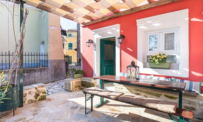 The country house 'Bekiris Traditional Inn' is located in Lefkimmi, a traditional village, and offers everything you need for a pleasant stay. The 102 m² property consists of a living room with a sofa bed for one person, a fully equipped kitchen, two bedrooms, and two bathrooms, accommodating up to 5 people. Amenities include high-speed Wi-Fi (suitable for video calls), television, air conditioning, and a washing machine. A baby cot and high chair are also provided. The house features a private outdoor area with a covered terrace and balcony. The Issos beach and the Agios Georgios area, where you will find restaurants, bars, cafés, and supermarkets, are 3 km away. Breakfast is served at the hosts' café in the village of Linia, just 3 km away, from 10:00 a.m. to 11:00 a.m and is offered at no extra charge. Free on-street parking is available. The property is suitable for families with children. Pets are not allowed.