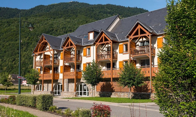 The Lagrange Vacances Residence Le Belvédère is perfectly positioned to offer you a wonderful mountain vacation in the French Pyrénées! After a day spent exploring the mountains, either by bike or on skis, sink into the excellent thermal baths in Luchon, a mere 500m by footpath and 2.5km by road. As a bonus, guests receive 1 free sauna or steam room session per apartment, per week! Take a stroll or use one of our bicycles to travel through the lively town centre and enjoy the trendy boutiques and shops, delicious restaurants, and endless entertainment. The surrounding area has a myriad of fun activities to participate in; our favourite is the mini golf course near the residence!
