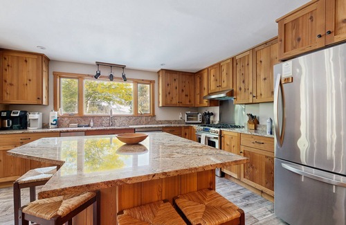 Once the setting for the 1981 Henry Fonda classic, 'On Golden Pond', Great Pond now serves as the backdrop for your own vacation memories at this private waterfront retreat. Designed for family-friendly comfort and entertainment, this three-bedroom cabin takes full advantage of its incredible lakefront setting with highlights including a private dock and swim platform, a canoe, kayaks, and spacious yard furnished for outdoor living. Hear Loon calls from the two-tiered, flagstone patio complete with dining and lounge seating, a gas grill, hammock, and outdoor fireplace.