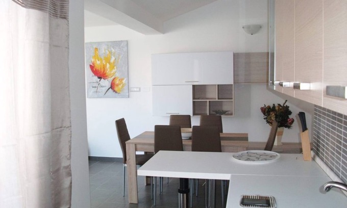 Casa vacanze di nuova costruzione situata al primo piano di una bellissima palazzina con muro in pietra.
