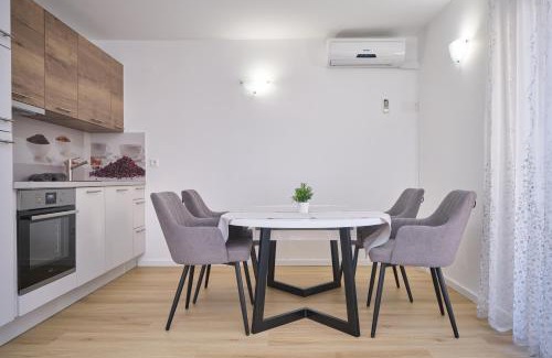 Just a 14-minute walk from Beach Čelina and 1.1 miles from Beach Ruskamen, Bella Vista Dalmatien features accommodations in Čelina, with a garden and barbecue facilities. With inner courtyard views, this accommodation features a patio. The apartment provides rooms with air conditioning, free private parking, and free Wifi. All units come with a terrace with sea views, a fully equipped kitchen with a dishwasher and a toaster, and a private bathroom with bidet. A balcony with an outdoor dining area and garden views is offered in all units. At the apartment complex, every unit includes bed linen and towels. Guests can also warm up near the outdoor fireplace after a day of cycling. Stanići Beach is 1.2 miles from the apartment, while Salona Archeological Park is 21 miles from the property. Split Airport is 30 miles away, and the property offers a paid airport shuttle service.