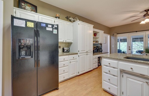 With Loch Lomond access down a paved path, a floating swim deck, and covered waterfront dining, this 3-bed, 3-bath home is a vacation unto itself! Spend your days splashing in the lake and your nights having a family game night on the screened-in porch. Homey decor welcomes you inside to kick back and relax, while attractions like Highlands Golf Course and the Branchwood Recreation Center offer plenty to do nearby. Book this Bella Vista vacation rental today for a relaxing getaway.