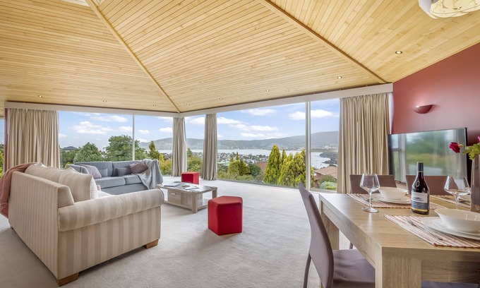 This Airbnb is located in the picturesque suburb of Bellerive, offering breathtaking panoramic views of the Derwent River. The accommodation is spacious and comfortable, featuring a cathedral ceiling that adds to its spacious and airy feel. You'll enjoy your stay in this well-appointed space. Conveniently, it's only a short walk from Eastlands shopping mall and the stunning Bellerive Marina, making it an ideal location for those who want to explore the local area.
