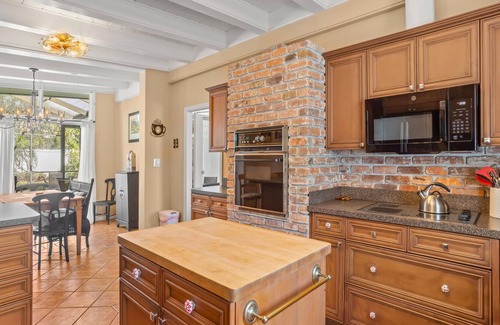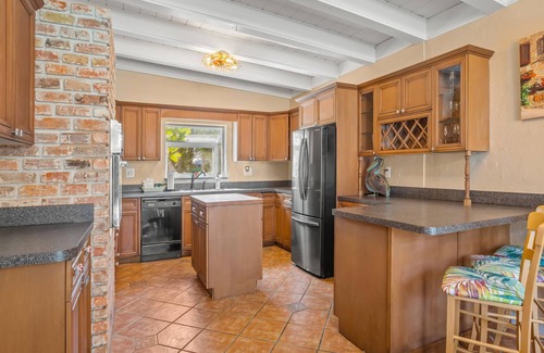 Upon entering Belle Vista Beach House, you'll immediately be struck by the warm and inviting atmosphere. The original tile flooring throughout the home not only adds character but also keeps the interiors refreshingly cool, even on the warmest Florida days. The large sliding doors flood the living spaces with natural light, creating a bright and airy ambiance.