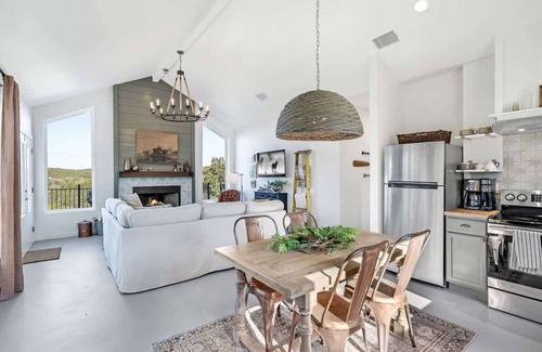 Affectionately named Belle Vue (Beautiful View) Cottage for its breathtaking views of the Texas Hill Country, this retreat has everything you need for the perfect getaway. With the Guadalupe River just a few minutes away, this is an idyllic stay for adventurers such as tubers, kayakers, and fly fishermen. You’ll also love being close to Canyon Lake, White Water Amphitheater, Gruene Hall, and Schlitterbahn Water Park!