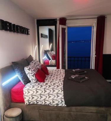 Bellerive Love Suite Magnifique vue lac is located in Publier, just 2.6 miles from Evian Resort Golf Club and 24 miles from Jet d'Eau. This beachfront property offers access to a balcony and free Wifi. Cornavin Train Station is 25 miles away and St. Pierre Cathedral is 25 miles from the apartment. Providing a terrace and lake views, the apartment includes 1 bedroom, a living room, flat-screen TV, an equipped kitchen, and 1 bathroom with a walk-in shower and a bath. Towels and bed linen are featured in the apartment. The property has an outdoor dining area. Breakfast can be enjoyed on-site, which includes fresh pastries and juice. Train Station Montreux is 26 miles from the apartment, while United Nations Geneva is 26 miles away. Geneva - French Sector Airport is 29 miles from the property.