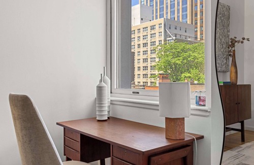 Guests can enjoy amenities including a full-time doorman, rooftop fitness center, and landscaped roof terrace. Ideally located near Union Square, top dining, markets, and major transit, this home offers elevated city living in one of Manhattan’s most charming neighborhoods.