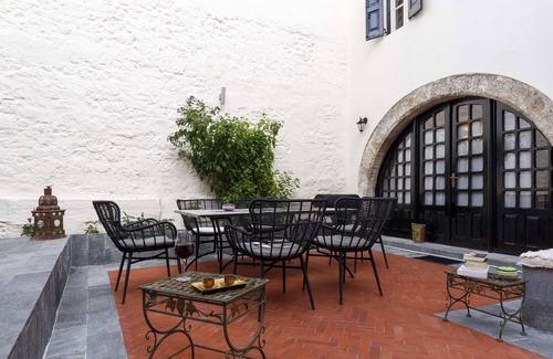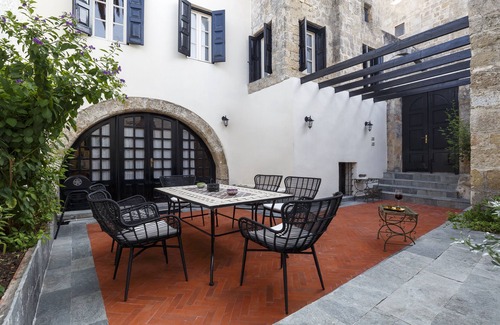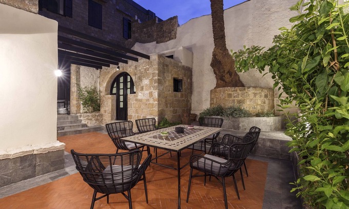 This beautiful property is located inside the walls of the historical Medieval Town of Rhodes. While it is a few steps away from historical monuments, ancient attractions, shops, bars and restaurants, the area is very quiet.