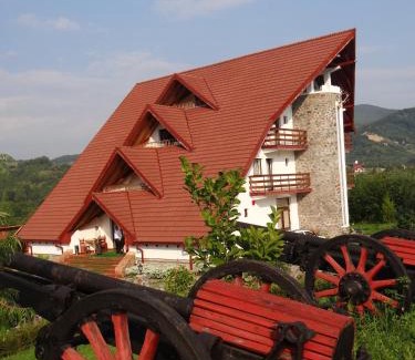 Featuring garden views, Belvedere in Corbeni features accommodations, a garden, a terrace, a bar, and barbecue facilities. Both free Wifi and parking on-site are accessible at the guest house free of charge. At the guest house, each unit includes a wardrobe, a TV, a private bathroom, bed linen, and towels. The rooms are equipped with heating facilities. Guests are welcome to eat at the on-site restaurant, which is open for dinner and lunch. Vidraru Dam is 6.1 miles from Belvedere, while Cozia AquaPark is 26 miles from the property. Sibiu International Airport is 70 miles away.