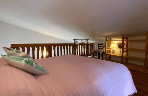Layout: Ground floor: (Living room(double sofa bed, TV, dining table), Kitchen(dining table, hob, coffee machine, espresso machine, oven, microwave, fridge, washing machine, high chair), bathroom(shower, toilet, bidet, hairdryer)) mezzanine: (bedroom(double loft bed)) coffee machine, balcony or terrace, heating, air conditioning, garden, garden furniture, parking