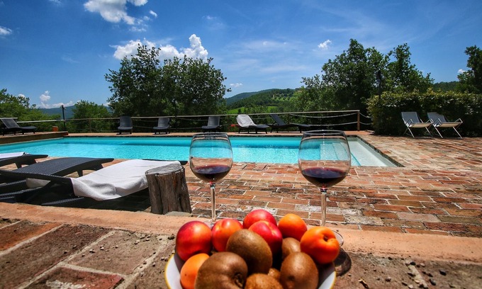 A getaway to beautiful Tevere valley located in Umbertide. This farmhouse comes with a shed swimming pool, table tennis, and barbecue and is near to the forest. It is ideal for a family with kids and is recently renovated. You can enjoy stunning view of the valley and surrounding forests with a barbecue.