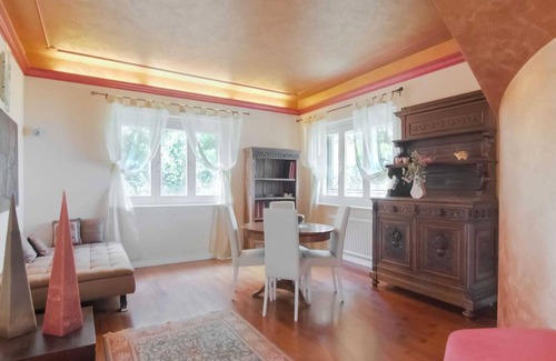 A classy abode to take a large party of 10 comfortably in a rather vintage kind of home. The holiday home is divided into 2 communicating apartments.