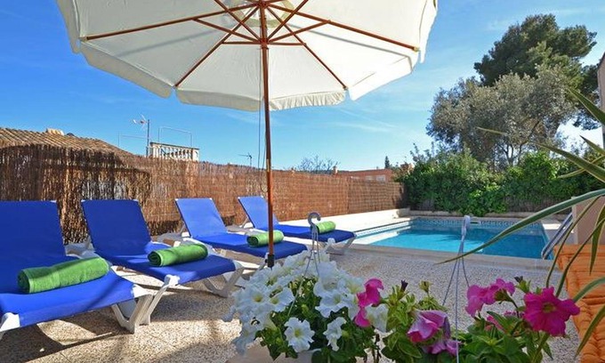 Calvià: Large, cosy, comfortable villa "Benestar", 2 storeys. Private: beautiful garden to relax. In the house: internet access, WiFi, washing machine. Bus stop "Magaluf" 3 km, railway station "Palma" 21 km. Please note: car recommended. Suitable for families, suitable for seniors baby equipment. Object suitable for 8 adults. The owner does not accept any youth groups. Loading and unloading of baggage is possible at the holiday house. Airfield 20 km from the property.