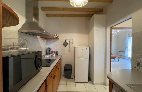 7 km from Pau, pleasant little detached house ideal for a couple, on one level, functional and bright, on private enclosed grounds of 150 m2 in the shade. Private parking closed by a gate. Terrace with lighting, partly covered, garden furniture, electric plancha, deckchairs. Equipped kitchen (induction hob, microwave/combined oven, washing machine, fridge-freezer). Living room, lounge area (TV, 1 sofa bed) opening onto the garden. 1 bedroom (1 double bed - French window onto the garden). Bathroom, wc. Possibility to rent sheets and towels. Cleaning option. Internet connection. Electric heating in supplement. Restaurant and small shops in the village, within walking distance. Gave with banks fitted out for walking, cycling and fishing 500 m away. River at 200 m.