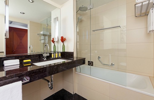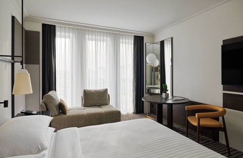 Berlin Marriott Hotel offers 379 accommodations, which are accessible via exterior corridors and feature safes and complimentary bottled water. Pillowtop beds feature down comforters and premium bedding. A pillow menu is available. 140-cm LCD televisions come with digital channels. Bathrooms include bathtubs or showers, slippers, complimentary toiletries, and hair dryers.
