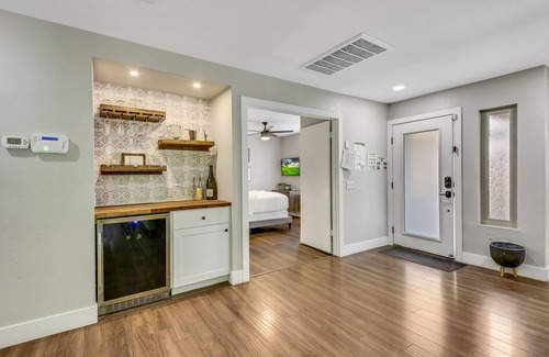 Look no further if you are searching for a property with a stunning backyard and a "wow" factor. Bermuda Bliss has a backyard made for entertaining and lounging out on those sunny days. No better way to start your vacation than witha swimming session in the refreshing pool. Meals can be prepared in the resort-style outdoor barbecue area featuring a natural gas barbecue, pizza oven, wet bar, mini-fridge, and bar-height seating for four. This awesome space is kept shaded under a Palapa covered with a switch-controlled fan. Misters will keep you cool while you relax with your family and friends and when it gets chilly two heat lamps will warm you up. Savor your favorite meals on the patio dining table with room for six featuring an outdoor television. Enjoy your time playing a friendly game of Ping Pong orClassic Bean Bag Toss Game. Sip on your favorite wine by the natural gas fire pit with seating for four, then take a dip in the spa.