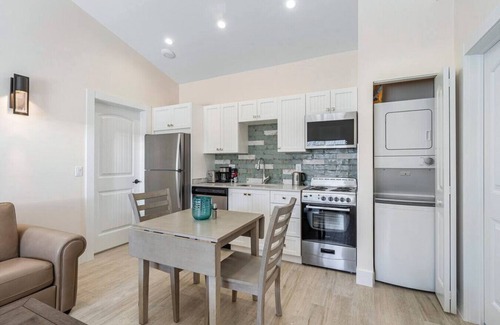 All units have two (2) 43-inch TCL Roku flat-screen digital TV`s (ROKU built-in): one in living room and one in bedroom #1. Bathroom has a tub-shower combo. All high-end brand new furnishings, decor and lines. Bedroom #1 has a queen-size bed and bedroom #2 has a queen-size bed. Living room has comfortable full-size sleeper sofa. Spacious living areas with luxurious modern Bermuda-style furnishings that include full kitchens with washer and dryer units! Stunning high-end finishes and exceptionally well-maintained premises. Surpasses the feel and quality of most 5-star hotel rooms! Brand new digital flat-screen TV`s with built-in ROKU systems and super high-speed (WIFI) internet! Sleeps up to 5 people! All bungalows are ground-floor. Onsite off-street parking available on premises. Professionally decorated by designer with a warm coastal beach feel. Open spacious kitchen fully equipped with coffee-maker, blender, toaster, microwave, dishes, pots, pans and kitchen utensils. Each bungalow also includes a dining table. Bathrooms include a hair dryer, iron and ironing board. Every bed includes high-end mattresses with high thread count linens as well as a 2nd set of linens for each bed. Laundry, dish soap, paper towels and toilet paper are provided for your convenience. Each new booking receives their own personal auto-generated digital access code from the new state-of-the-art August key-less front-door entry systems that sync with Airbnb making it safer and even easier for you to arrive at your desired time!