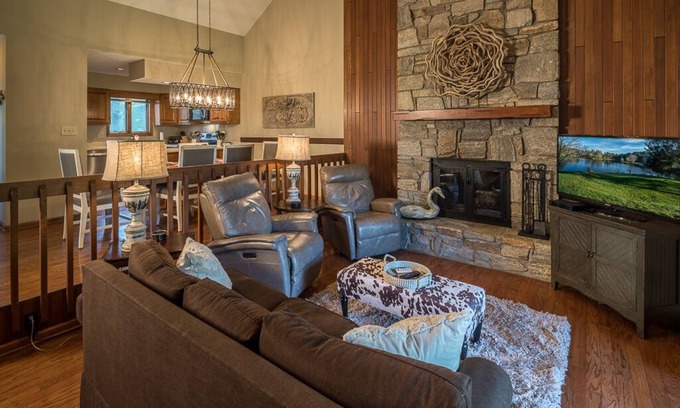 Quiet, private and comfortable top unit at Chetola Resort. There are 3 bedrooms and baths all with king size beds and luxury hotel linens! Wood burning stone fireplace, vaulted ceilings and hardwood floors throughout.