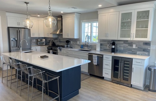 The Guest House @ Barnegat Light is located on the most popular beach streets in the North End of LBI. Brand new build 6 Bedroom, 4 bath house a block to the beach and bay. Guests love our frame TV and easy access elevator.