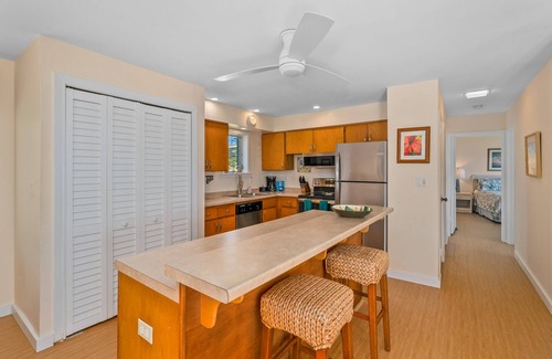 The Best Ali'i Kai Location & Condo: Hollys Kauai Condo has one of the best Ali'i Kai locations. Our condo is an end unit on the 2nd floor with No Stairs. Easily roll your suitcase from the parking lot into this spacious 2 bedroom, 2 bath condo. The condo is equipped with just about anything you will need to explore and enjoy the island: beach chairs, beach towels, boogie boards, snorkel equipment with at least 6 sets of fins of varying sizes, beach umbrella, beach blanket, binoculars, cooler, games, videos, books and more.