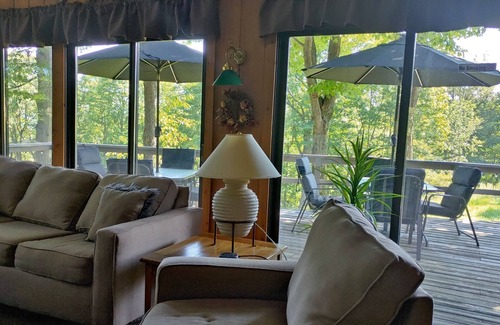 Very large luxury home/mini ski lodge. Located at the very top of the slopes. Just 300 feet from the double triple chair lift. Recently refurbished, Perfect for multi families, large groups, weddings and golf outings, Two large decks, 2 Bars, disco with dance floor, lighting and sound system. 10 large screen TV's, pool table, dart board. Located at the very top of the ski slope. Ski in and Ski out. Large ski room with inside and outside ski racks. 3 Fire Places. 4 living room areas ands 4 dining room areas. Steam room, sauna room. Stainless large BBQ grill, fire pit. Seating for 65 people. will, Can park over 20 cars on two private paved parking lots. Beam ceiling with antiques from around the world. Beautiful view. Over 80 windows.Includes bedding, towells, paper products, trash bags, pots/pans, coffee maker, toaster, k cup, new appliances, washer dryer dinnerware for 24. Make your next vacation something really special. Absolutely the best luxury party house and location. Nothing else compairs. 5 star reviews on all travel sites.