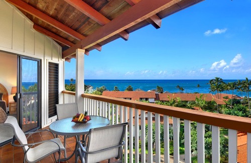 Unit 833 at Nihi Kai Villas: The best view in Poipu! See why our lanai has been chosen site for wedding and vow renewals. Unparalleled ocean, coastline and mountain views from this top floor expansive lanai open to a ten mile coastline view and the central and highest mountains on Kauai - Mt. Kawaikini and Mt. Waialeale.