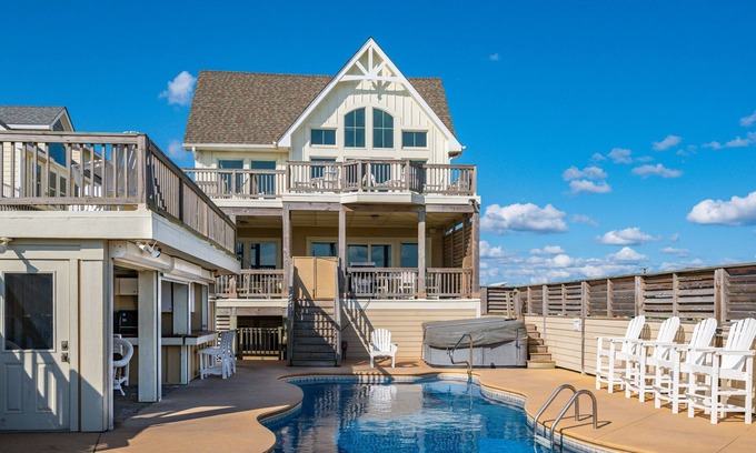Best Of My Love: Gorgeous oceanfront home in Kill Devil Hills with a private pool, cabana, hot tub, rec room/pub, theater room, and much more!