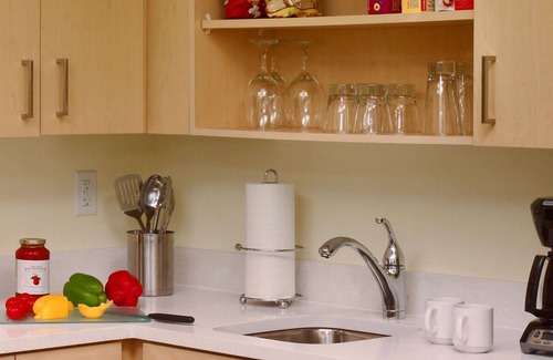 - Coffee maker, full-sized fridge, microwave, toaster;