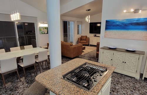 Newly renovated with a large new pool and a massive terrace with 22-mile views to the east. On a clear day, you can see all the way to Culebra. Additional beautiful ocean views await you on the back patio and the front porch. If you ever tire of the views, there is an 84" TV in the living room and an additional sitting room with another large TV and games for the kids.
