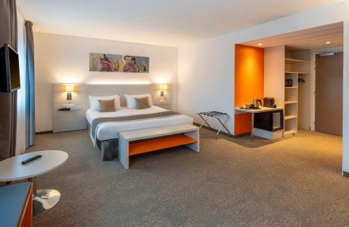 Best Western Colmar Expo is 2.5 mi from the center of Colmar and 1.2 mi from the A35 motorway. This hotel offers a 24-hour front desk, a free private parking and a bar. (2 charging station for electric vehicles) Serviced by a elevator, all rooms are air-conditioned and feature a desk, a flat-screen TV, free wifi and a private bathroom with a hairdryer and a shower. Breakfast is served every morning at Best Western Colmar Expo. There is also a bar with terrace on site where guests can enjoy snacks. Best Western Colmar Expo is a 10-minute drive from the Wine Route of Alsace and right at the opposite of Colmar Expo Exhibition Center.