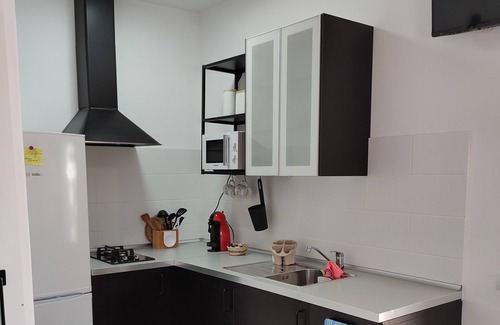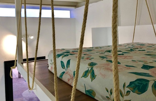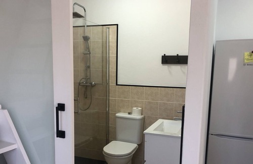 Studio with high bed from where to see the sea and the horizon, well equipped kitchen, bathroom with shower, living room and terrace from which to enjoy panoramic views of the sea. It has a porch with pergola, hammocks and a gas iron with sink where you can cook and eat enjoying the views.