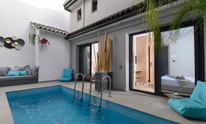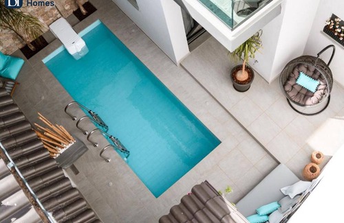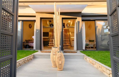 Εντυπωσιακή κομψότητα και πολυτέλεια χαρακτηρίζουν αυτή τη Villa. Είναι 67 τμ και μπορεί να φιλοξενήσει 4 άτομα. Διαθέτει μια κρεβατοκάμαρα με King size κρεβάτι και μπάνιο στον επάνω όροφο, μια κρεβατοκάμαρα με Queen size κρεβάτι και μπάνιο στον κάτω όροφο, κουζίνα, σαλόνι, αυλή και κοινή πισίνα 10 τμ.