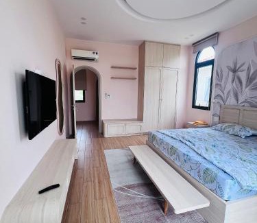 This 1 Bedroom Villa is suitable for tourists and travelers. It has several amenities that would guarantee your comfort. These amenities include: Internet, Air Conditioner, Parking, and several others. This is a good star rated property . Coming to Ấp Thanh Bình and needing a place to stay? Be it for work or for leisure, consider staying at this Villa for your next visit, you will surely love it.