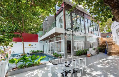 A few steps from Bai Dau Beach in Vung Tau, Biệt Thự VIP View TRỰC DIỆN Biển Ngay BÃI TẮM provides accommodations with access to a sauna and hot tub. This beachfront property offers access to a balcony, free private parking, and free Wifi. The rooftop pool features a pool bar and water slide. Providing a terrace and sea views, the spacious villa includes 6 bedrooms, a living room, satellite flat-screen TV, an equipped kitchen, and 5 bathrooms with a walk-in shower and a hot tub. Featuring air conditioning, the villa offers Nintendo Wii, PS3, and a iPad. There's also a seating area and a fireplace. There is an on-site bar. The villa has a garden for your convenience, along with a private beach area. White Villa is 1.7 miles from Biệt Thự VIP View TRỰC DIỆN Biển Ngay BÃI TẮM, while Christ of Vung Tau is 3.7 miles away. Tan Son Nhat International Airport is 63 miles from the property.