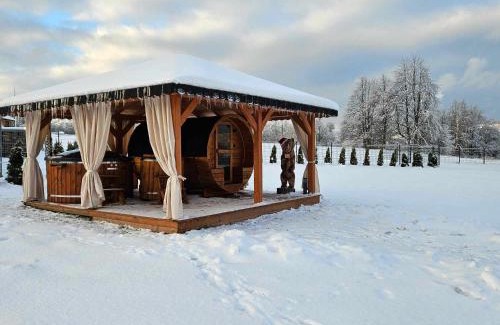 Bieszczadzka Perełka is a recently renovated villa in Równia where guests can make the most of the free bikes and garden. This property offers access to a balcony, table tennis, free private parking, and free Wifi. The villa features an outdoor swimming pool with a fence, as well as a sauna and private check-in and check-out. Providing a terrace and mountain views, the spacious villa includes 4 bedrooms, a living room, cable flat-screen TV, an equipped kitchen, and 3 bathrooms with a hot tub and a bath. A private entrance leads guests into the villa, where they can enjoy some wine or champagne and fruit. The villa offers bed linen, towels, and laundry service. Guests can make the most of the warm weather with the property's barbecue facilities. For guests with children, the villa provides kids pool, an indoor play area, and outdoor play equipment. Guests can also warm up near the outdoor fireplace after a day of cycling. Skansen Sanok is 25 miles from Bieszczadzka Perełka, while Krzemieniec is 27 miles away.