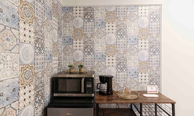 This chic above-ground studio features excellent finishes, tall ceilings, recessed lights, central AC/heat and high-speed internet, plus gorgeous decor and all the amenities you need for travel.