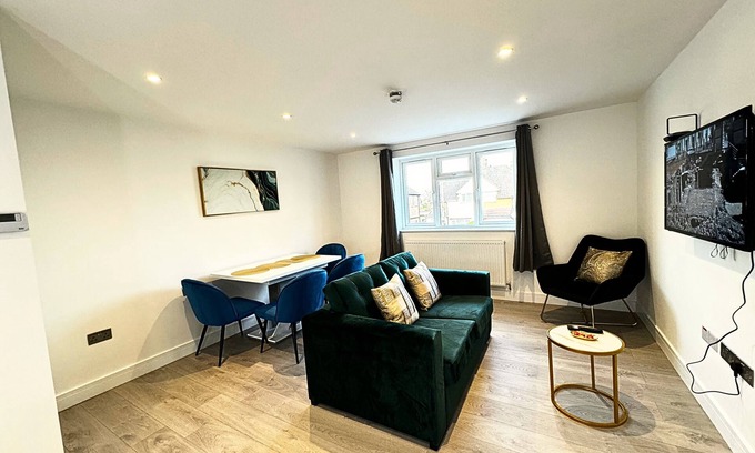 Big and Stylish Flat , EV Charge possible, 5 minute drive to Heathrow airport is located in Ashford. Big and Stylish Flat , EV Charge possible, 5 minute drive to Heathrow airport provides accommodation, featuring TV, Bedding/Linens, Child Friendly, among other amenities. This Apartment features TV, Bedding/Linens, Child Friendly, to make your stay a comfortable one.