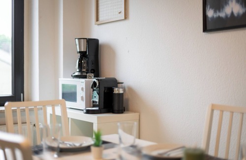 In the down-to-earth Ruhrort district with typical Ruhrpott charm, we have created a very practical and centrally located apartment in a pleasant listed old building (3rd floor, no elevator). The apartment is simply, yet comfortably furnished to a high standard. The 3 double bedrooms offer 6 large single beds (140x200cm) with high-quality slatted frames and innerspring mattresses - the best sleep. Allergy-friendly bedding from Schiesser provides the right cozy factor. The apartment is ideal for larger groups, discerning fitters, students, trade fairs, business or private trips.