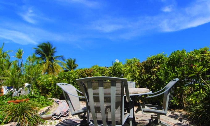 Step out of our large 1-BR "Maringa" villa to the side of a kidney-shaped salt water pool. Enjoy late breakfasts served poolside (or bedside!) from our native Bahamian chef. Queen bed and a "double - couch-bed" are in the room. Bath has a full tub and the unit has a small refrigerator, electric stove and cookware.
