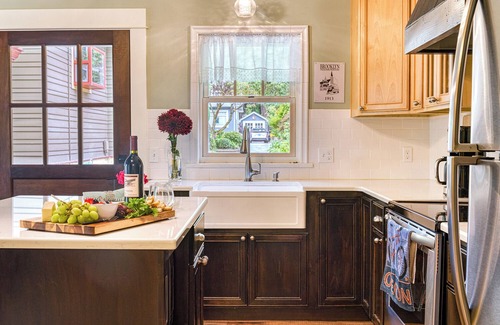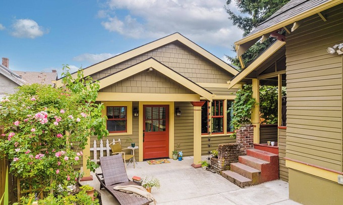 Located in Portland, this bungalow is a dream. With one fabulous bedroom featuring a cozy queen bed, guests will feel right at home. Sleep with the curtains open and you'll feel as though you're sleeping under the giant fir tree. The bathroom offers a marvelous shower and a hair dryer for added convenience. the 12-foot ceilings make it spacious and full of light. Open the French doors to a healing garden. This fantastic property also includes amenities like an iron, heating, AC, a washing machine, WiFi, and on street parking. Fall in love with Portland and enjoy the magic it has to offer.