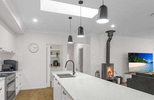 This new build has space for the entire family. Four bedrooms and an extra sofa bed in one of the living areas, inground pool (the swimming pool is not heated). Ducted heating and cooling all year round comfort, wood heater for ambiance, close to the shopping center Home-Co.