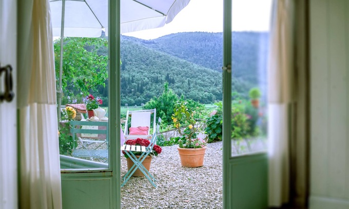 Casa Toscana is a delicious rural romantic 2 bedroom apt, refined taste (1 double, 1 two single) kitchen, living room and garden in a wonderful Tuscan countryside. It is fresh in the summer because of the big stone walls and warm in the winter for the pellet / wood heating floor.