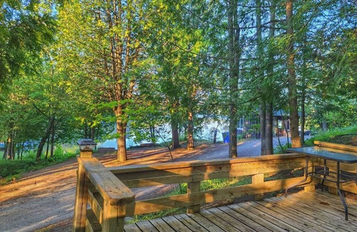 North Frontenac Lodge is just under 3 acres and is a shared space with 4 other cabins. The property included multiple fire pits (as well as private deck fireplaces on each cabin deck), a communal screened gazebo for rainy or 'buggy' days, a front sandy bay and a back dock. There is a shared shower house for 3 of the cabins. The waterfront, wood burning hot tub, water amenities (kayaks, canoes, pedal boat, SUPs, row boat) are shared with 5 cabins in the summer.