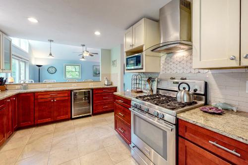 Birch Grove offers accommodations in Mashpee, 8.3 miles from Sandwich Glass Museum and 8.4 miles from Heritage Museums & Gardens. The vacation home has access to a restaurant. St Francis Xavier Church is 12 miles away and John F Kennedy Hyannis Museum is 12 miles from the vacation home. Featuring a patio, this vacation home also includes a satellite TV, a well-equipped kitchen with a dishwasher, an oven, and a microwave, as well as 3 bathrooms with a walk-in shower and a hair dryer. The property has an outdoor dining area. Guests at the vacation home will be able to enjoy activities in and around Mashpee, like cycling. The vacation home has a picnic area where you can spend the day outdoors. Plimoth Plantation is 26 miles from Birch Grove, while South Cape Beach State Park is 8.5 miles from the property. Cape Cod Gateway Airport is 11 miles away.