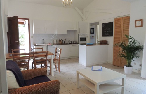 From the courtyard you enter the kitchen which is fully equipped with everything you'd need on holiday from an oven, 4-ring induction hob, microwave, dishwasher, fridge/freezer, blender, through to champagne flutes
