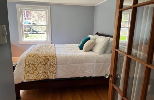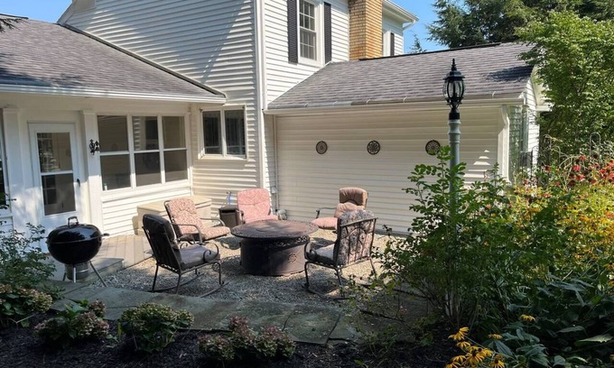 The Bissell House is a single family home. There are 3 bedrooms: one with a king bed and one with a queen, and the upstairs has a full bed. Also a pull out sofa in the living room. Therefore The Bissell House will accommodate up to 8 guests. The home is off a main road on a side street while still close to all local amenities. You have the yard to yourself which is peaceful and relaxing. Outdoor games are available for you to enjoy. The Bissell House is also a great spot for bird watching! Use the binoculars in the kitchen to get a closer look. In addition, there is a patio area with a propane fire pit to sit around. Up the hill is another firepit with chairs to sit around. There is 1 full bathroom on the first floor with a shower (tub, not a walk in). The upstairs bathroom has a toilet and a stall shower. For now, 2 upstairs rooms are locked for storage and renovation. This house has a fantastic water filtration system- no sulphur water here! The living room is a great spot to curl up with a cup of coffee or tea and soak in some serenity. Forgot a book? Read one of ours! The kitchen is immaculate, up to date, and has all the amenities needed to cook a full meal with ease. There is a Weber grill outside if you prefer BBQ! The sun porch is a great place to enjoy some fresh air. There is a laundry area with very large washer and dryer. There is nothing better than leaving your vacation with a suitcase full of clean laundry! Air conditioners in the bedrooms for summer stays. Close to hiking trails, mountain bike trails, snow mobile trails, breweries, fishing, kayaking, state parks. The Bissell House does not compromise on comfort and makes sure every guest has an amazing trip they will remember for years to come!