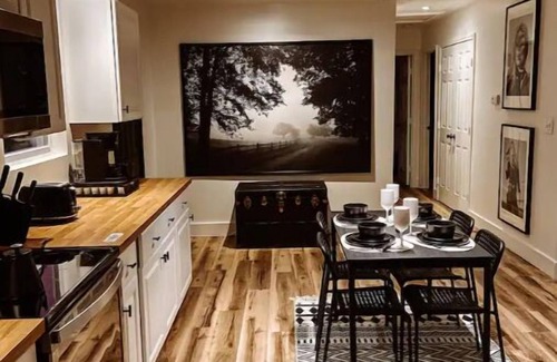 Come relax in a black and white retro pop country cabin located just south of Charlotte. Walking distance to Squirrel Lake Park, Four Mile Creek Greenway and downtown Matthews. This could be just what you're looking for whether you need - a breath of fresh air (a swing set in front of a stream where birds, deer and foxes play), to enjoy some tunes (take your pick of guitar or records), to mix up your work environment (fast WiFi) or just to catch up on sleep (the memory foam is waiting for you).