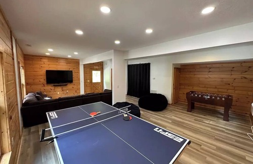 Escape to our Black Mountain retreat, perfect for large groups and family reunions. Spread across multiple cabins, this spacious retreat offers ample room for everyone to relax. Enjoy breathtaking mountain vistas from the expansive deck or cozy up by the fireplace in the grand living area. With a fully-equipped kitchen, multiple bedrooms, and a game room, this cabin promises endless entertainment. Explore nearby hiking trails, visit Asheville, and create lasting memories. Book your stay now.