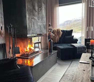 24 miles from Hof - Cultural Center and Conference Hall in Grenivík, Black pearl - Villa with a view provides accommodations with access to a hot tub. This property offers access to a balcony, free private parking, and free Wifi. Guests can use a garden. Providing a terrace and garden views, the spacious villa includes 3 bedrooms, 2 living rooms, flat-screen TV, an equipped kitchen, and 2 bathrooms with a hot tub. The accommodation has a fireplace. Akureyri Airport is 23 miles away.